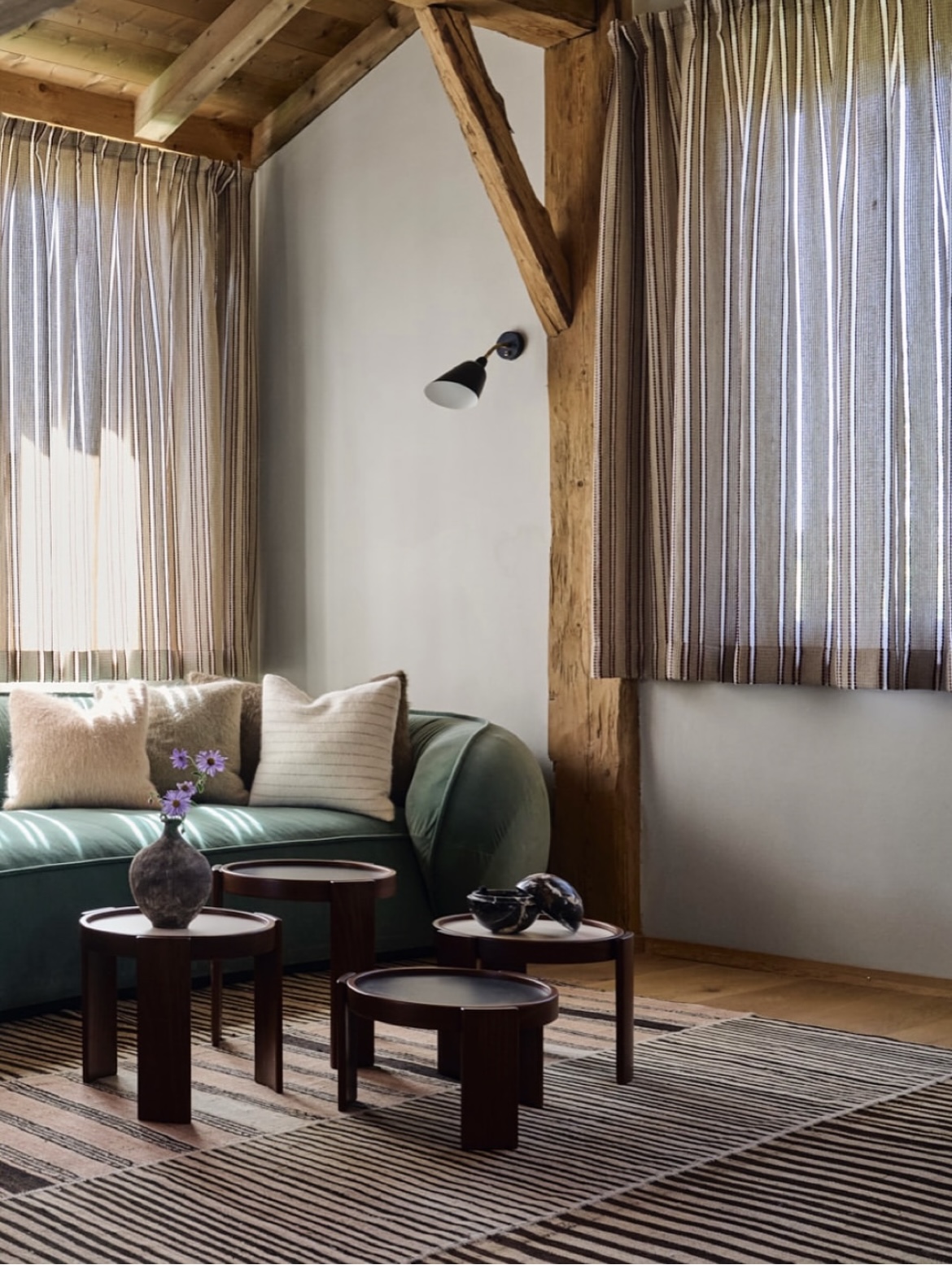 In the rolling landscapes of Chiemgau, Bayern, Stephanie Thatenhorst transformed a historic farmhouse into a modern home where rustic charm meets contemporary design. Carefully preserved original elements provide a warm, authentic backdrop, beautifully complemented by custom-made EDELGRUND rugs thoughtfully placed in select rooms. Each rug brings texture, color, and a sense of heritage, creating a subtle dialogue between traditional craftsmanship and modern interiors—a perfect match that makes the farmhouse feel both rooted in history and effortlessly modern.